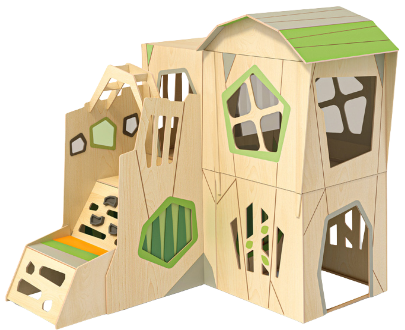Das Spielhaus „Owlaf“ in der großzügigen 5er Eck-Kombination ist ein echtes Highlight für jede Kindertagesstätte. Es bietet Kindern vielfältige Möglichkeiten zum Spielen, Verstecken, Lesen und Träumen – ein Ort, an dem Fantasie lebendig wird und Geborgenheit spürbar ist.